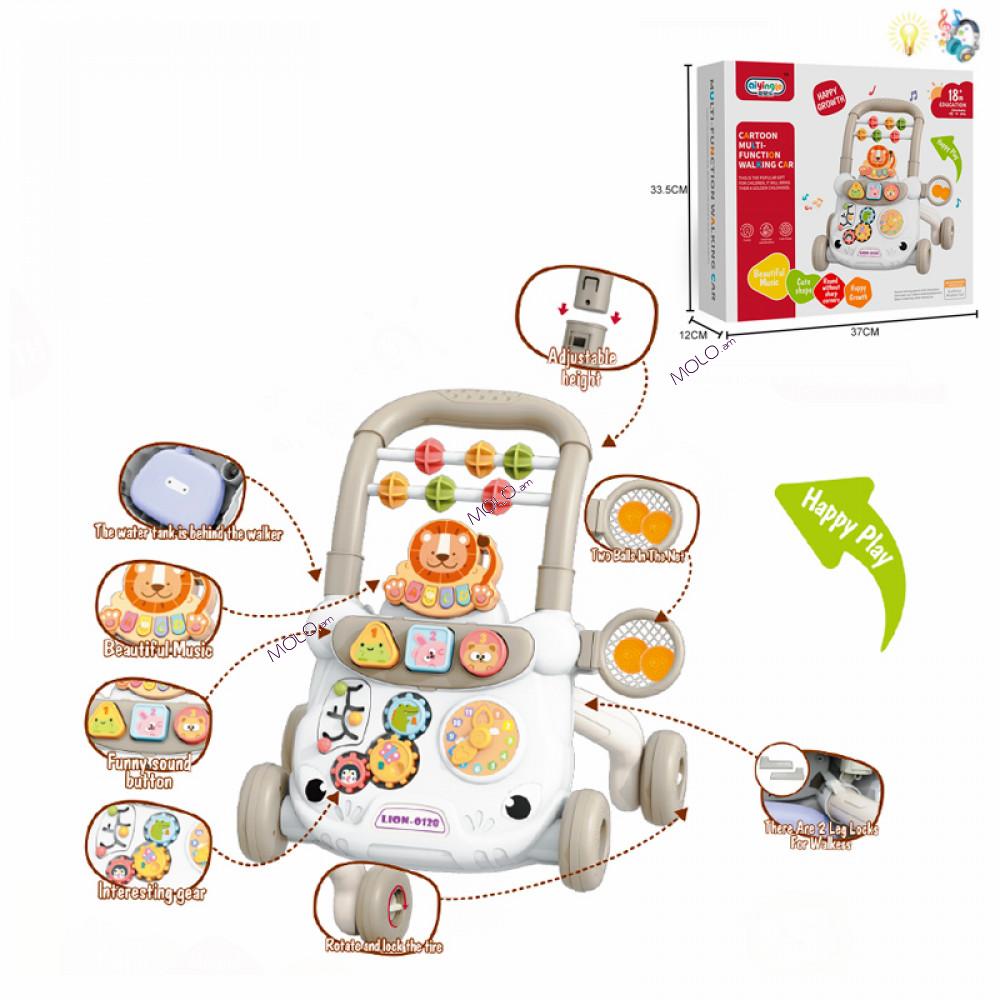 Հարմարավետ նստատեղ Լայն հիմք կայունության համար Երաժշտական մեղեդիներ Գունավոր վահանակ խաղալիքներով Սիլիկոնե անիվներ