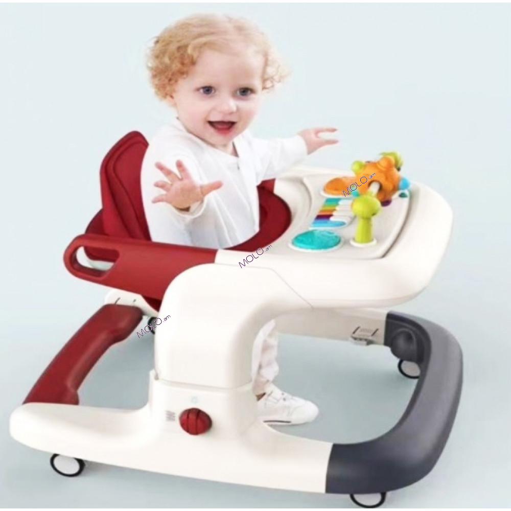 Հարմարավետ նստատեղ Լայն հիմք կայունության համար Երաժշտական մեղեդիներ Գունավոր վահանակ խաղալիքներով Սիլիկոնե անիվներ