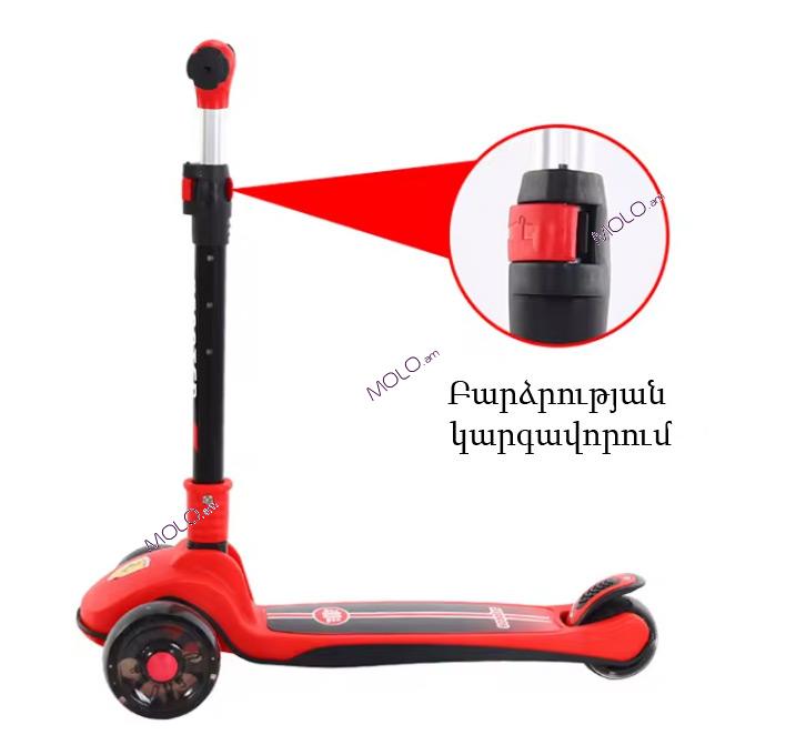 • Ղեկի բարձրությունը կարգավորվում է • Անիվների քանակը՝ 3 • Մետաղ, պլաստիկ • Լուսարձակող անիվներ